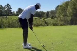 如此热爱!詹姆斯晒与友人冒着38.9度高温练习打高尔夫